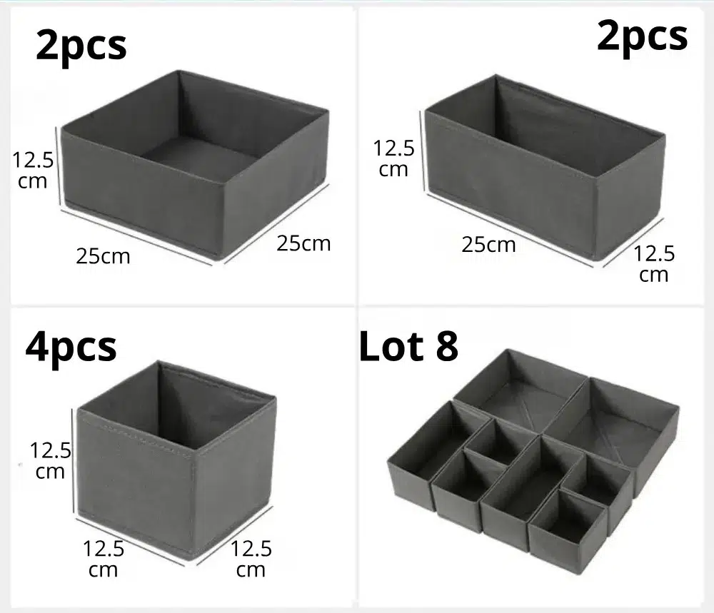 Ces organiseurs sont une solution de rangement efficace et stylée, parfaite pour optimiser l'espace et maintenir l'ordre dans n'importe quelle pièce. Leur design pliable et les dimensions variées permettent une grande flexibilité d'utilisation.